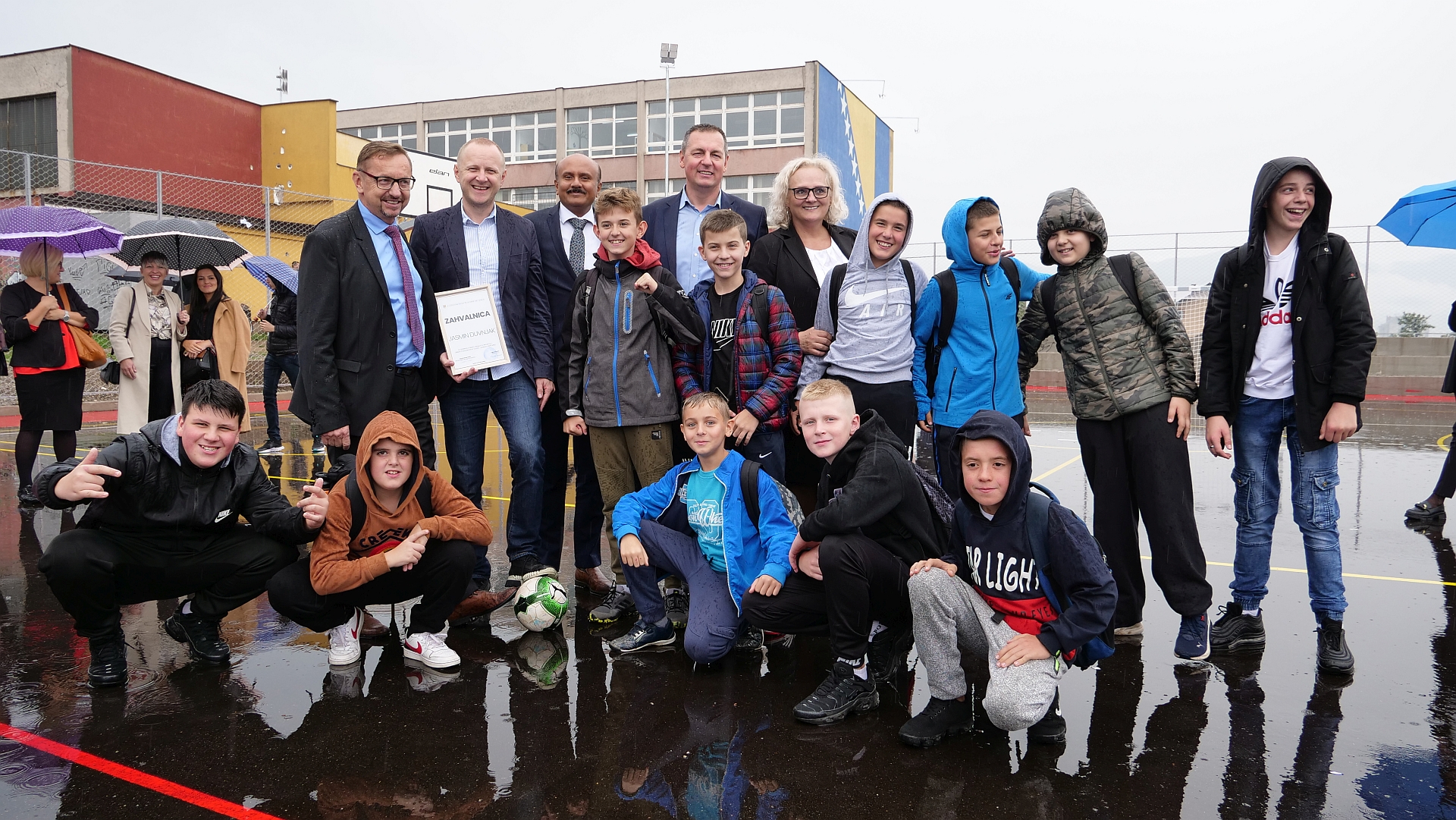 Generalni direktor ArcelorMittal Zenica Nikhil Mehta i ministar za obrazovanje, nauku, kulturu i sport Zeničko-dobojskog kantona Spahija Kozlić svečano su predali na korištenje novoizgrađeni sportski poligon u sklopu OŠ "Alija Nemetak" u Peharama.