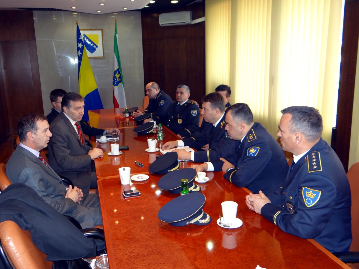 Predstavnici Štaba za koordiniranje i usmjeravanje aktivnosti na osiguravanju nogometne utakmice BiH- Grčka, policijski komesar Fahrudin Bečirović, načelnik uniformirane policije MUP-a ZDK Semir Šut, komandir Jedinice za podršku MUP-a ZDK Senaid Hasić, načelnik PU I Admir Gazić, komandir PS Centar Marko Šakić i šef Odsjeka krim policije PU I Sead Bolić bili su gosti premijera Fikreta Plevljaka i ministra Rifata Delića, u sjedištu Zeničko-dobojskog kantona.