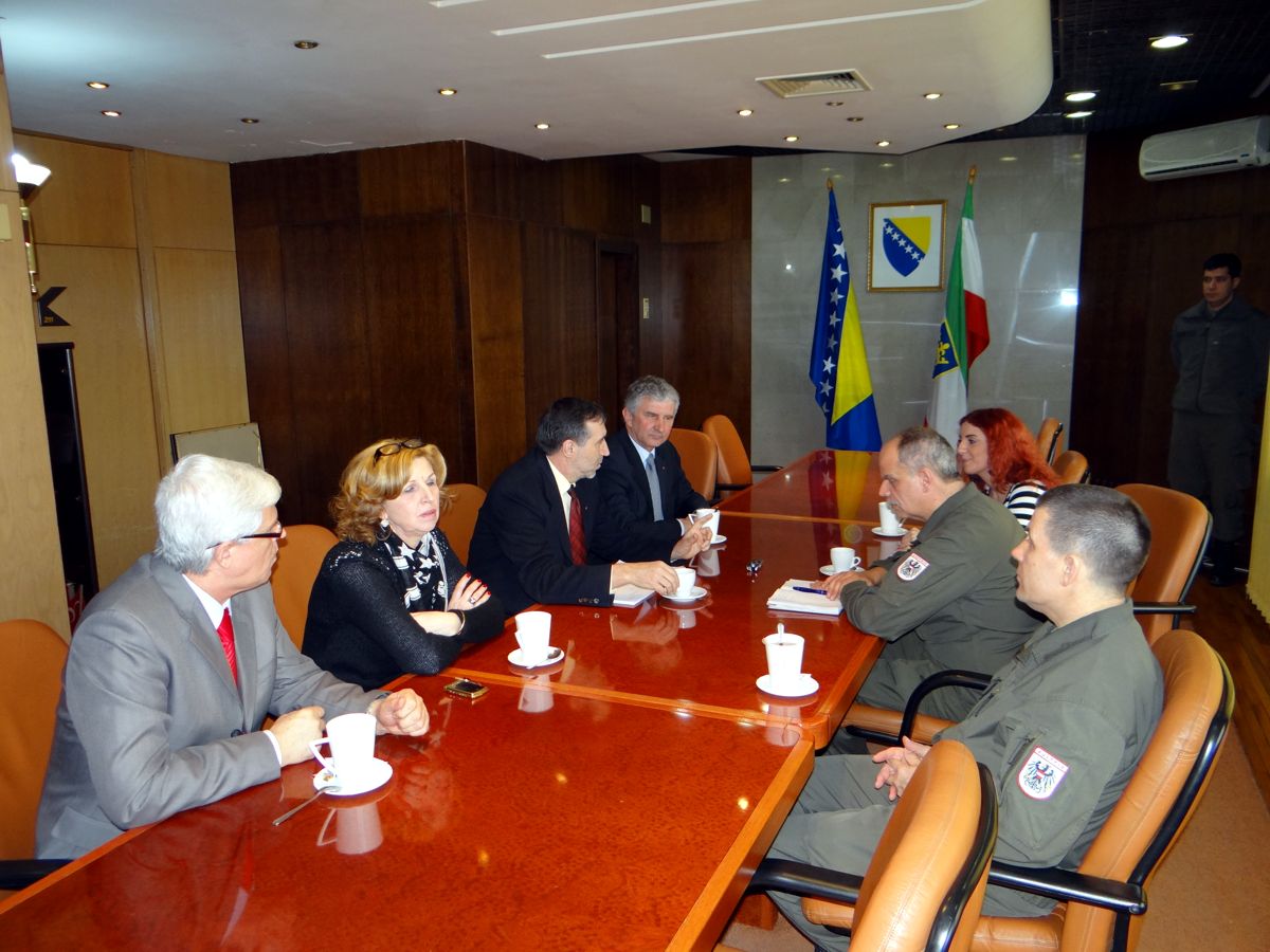 Premijer Fikret Plevljak sa ministrom za obrazovanje, nauku, kulturu i sport Mirkom Trifunovićem ugostio je, u sjedištu ZDK, komandanta austrijskih snaga u sastavu EUFOR-a u BiH pukovnika Eriha Simburgera (Erich Simburger) sa saradnicima.